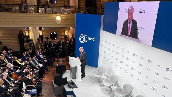 El titular de la ONU señala en la Conferencia de Seguridad en Múnich que la comunidad internacional debe reforzar la arquitectura global de paz y seguridad para hacer frente a desafíos actuales como la crisis climática, la inteligencia artificial o las armas cibernéticas. Insiste en la necesidad de establecer un mecanismo eficaz de alivio de la deuda y promover una transición justa hacia las energías renovables.