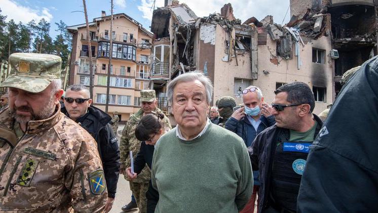 El titular de la ONU visita los suburbios de Kiev, Borodyanka, Bucha e Irpin, donde se sospecha se cometieron crímenes de guerra. António Guterres insta a Rusia a "aceptar cooperar" con la investigación en curso iniciada por la Corte Penal Internacional.