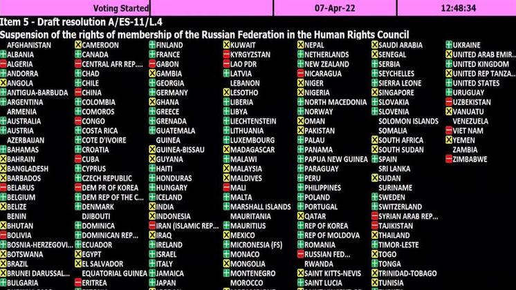 Rusia, suspendida del Consejo de Derechos Humanos