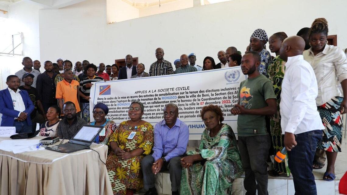 A une douzaine de jours de la tenue des élections générales en République démocratique du Congo, la section des Affaires civiles du bureau de la MONUSCO à Beni a organisé une série d’ateliers de sensibilisation à la prévention et à la réduction des violences en période électorale.