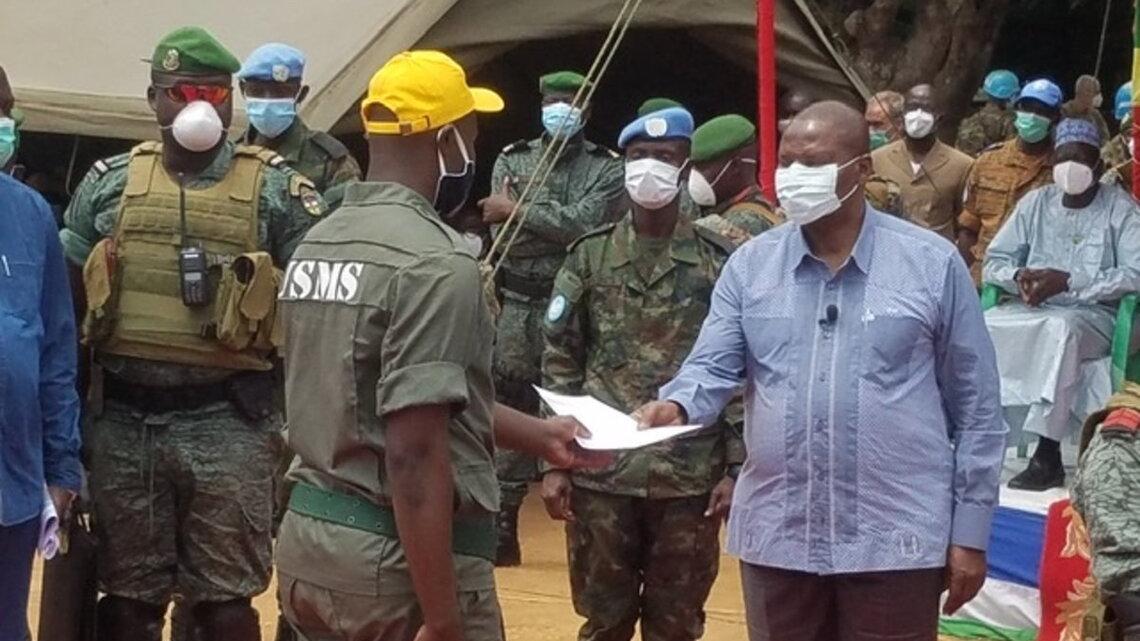 La cérémonie, présidée par le Président de la République, Faustin Archange Touadera, en présence du Président de Assemblée nationale, Laurent Ngon Baba, du Premier ministre, Firmin Ngrebada, des représentants de la MINUSCA, de l’Union Européenne (UE) et de l’Union Africaine (UA), marque la sortie officielle de ces éléments des USMS. C’est une des recommandations de l’Accord de paix qui se concrétise ainsi.