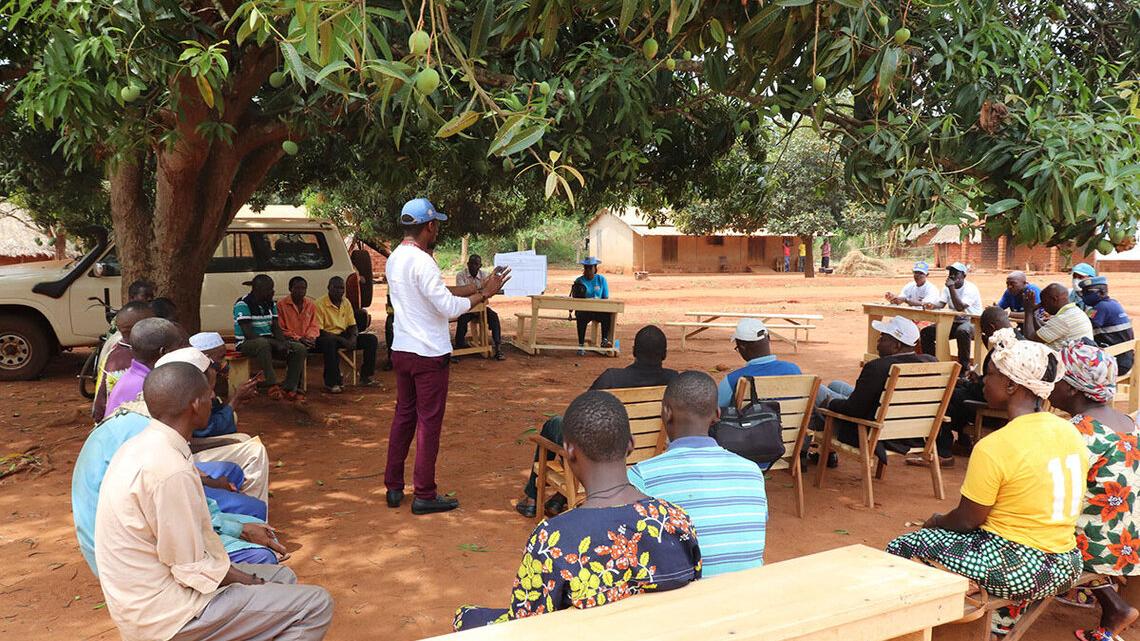 La MINUSCA et des autorités administratives de Bangassou ont effectué une sensibilisation au profit d’une cinquantaine de maires, chefs de village et leaders communautaires , au village Yongo-fongo, situé à 25 kilomètres de Bangassou sur l’axe Rafai, le 28 mars 2022.