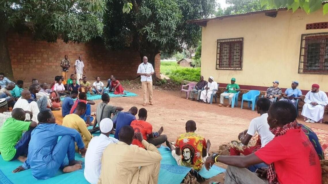 Une séance de sensibilisation a été conduite le 25 Aout 2023 dans le 2e arrondissement de Bossangoa, par la MINUSCA en partenariat avec le Comité Local de Paix et de Réconciliation. Portant sur l’accueil des retournés musulmans, la cohésion sociale, et le vivre-ensemble gage d’une paix durable, l’activité s’inscrit dans le cadre de la protection des civils.