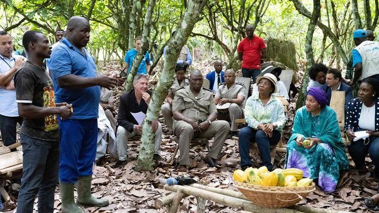Dans le cadre de sa visite en Côte d'Ivoire, la Vice-Secrétaire générale de l'ONU, Amina Mohammed, s'est rendue dans l'une des principales régions de production cacaoyère pour apprécier l’appui des Nations Unies au gouvernement ivoirien en matière de cacao durable.