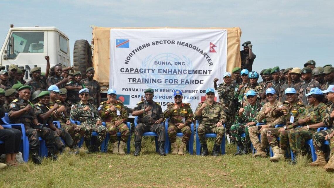 La cérémonie de clôture de cette formation assurée par les contingents bangladais, marocains, népalais et indonésiens de la MONUSCO a eu lieu le 8 juillet 2024 à Rwampara. Devant les invités, les commandants des différents contingents de la MONUSCO basés en Ituri et les autorités militaires des FARDC, les apprenants ont juré de « ne jamais trahir le Congo ».