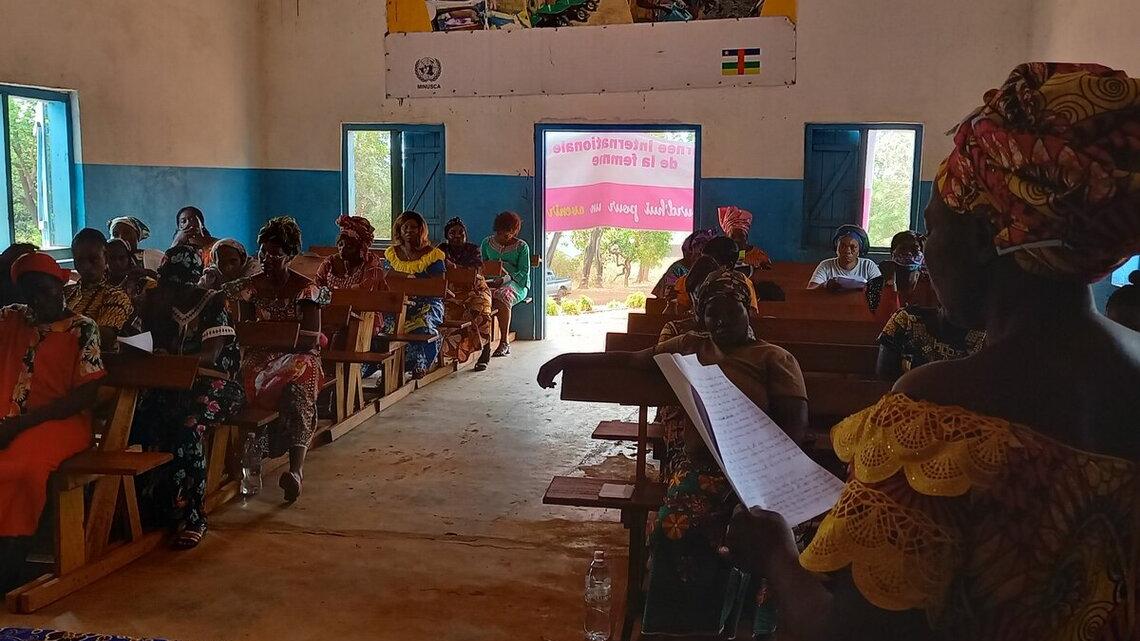 Un atelier sensibilisation, sur la participation active des femmes aux instances de prise de décision, a été organisé dans trois arrondissements de la ville de Bangassou, le 07 mars 2022. Ouvert par le préfet du Mbomou, Pierrette Benguere, l’atelier a aussi connu la participation des femmes des Sections des Affaires politiques, droits de l’homme, de la Division électorale et de l’Information publique de la MINUSCA.
