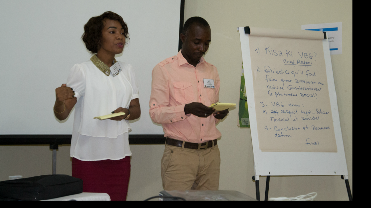 Mme Florestal et l’inspecteur Manouchka Remy, chef de l'Unité de lutte contre les crimes sexuels (ULCS) de la PNH, ont rythmé les travaux en groupe lors des ateliers. Parmi les principaux thèmes développés lors des discussions : les approches socioculturelles des violences basées sur le genre, le cheminement de la procédure pour les cas de violences sexuelles et sexistes, l’importance de la prise en charge des victimes, la législation haïtienne en la matière ou encore le profil des suspects.