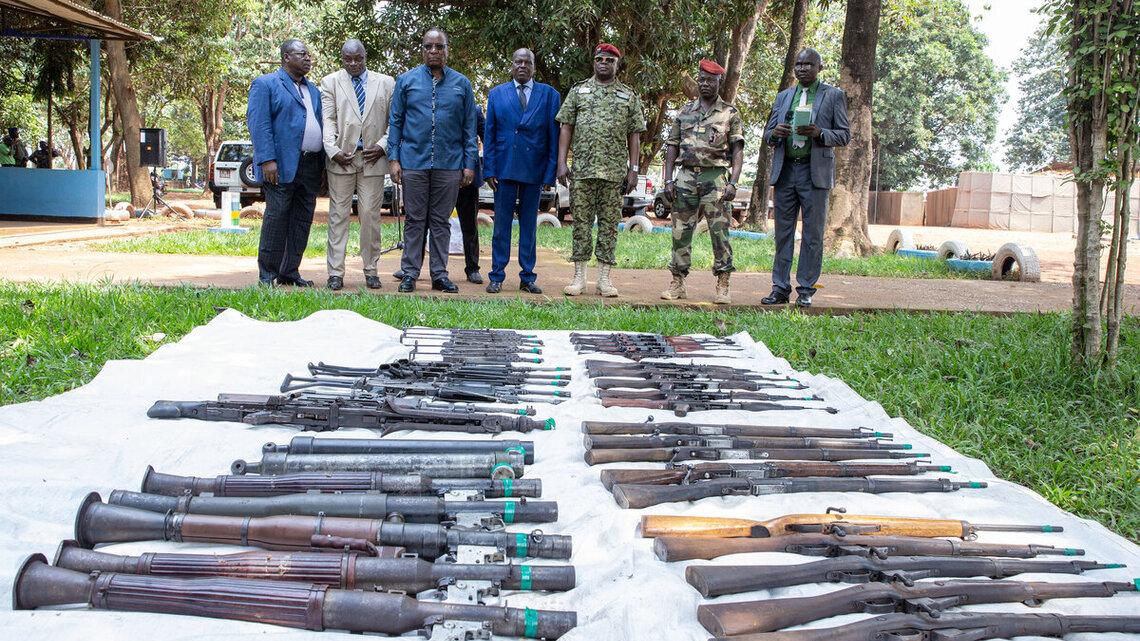 La MINUSCA et l’UEPNDDRR unissent leurs efforts pour la sécurité en République centrafricaine avec la remise de 311 armes d’ex-combattants