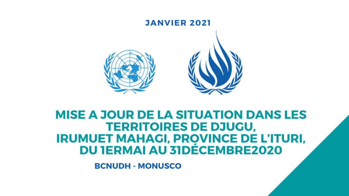 En janvier 2020, le BCNUDH a publié un rapport sur les violations des droits de l’homme dans le territoire de Djugu, de décembre 2017 à septembre 2019. Le rapport décrivait une situation sécuritaire et des droits de l’homme alarmante, avec plus de 701 personnes tuées et plus de 300 mille déplacés internes en raison du conflit.