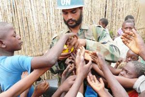 05 août 2011MONUSCOA Kiwandja, les casques bleus construisent une école pour des enfants sourds muets