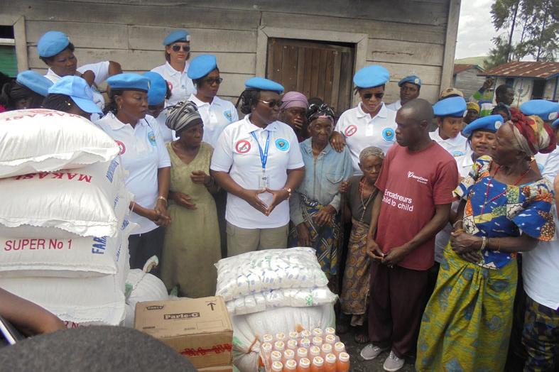 03 mai 2017MONUSCOLe comité des femmes de la police MONUSCO rend visite aux déplacés du camp Mugunga III