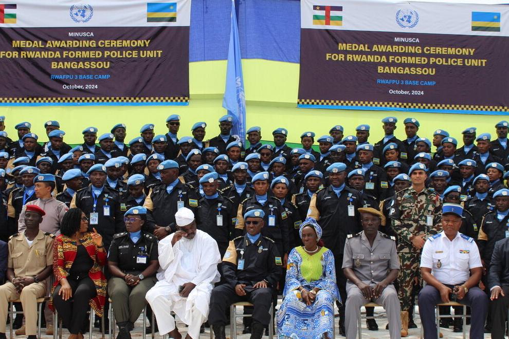 Le 15 octobre 2024, les Casques bleus de la 3e rotation du contingent de la Police constituée rwandaise de la MINUSCA, stationnés à Bangassou, ont reçu la médaille de l'ONU pour leur engagement au service de la population…