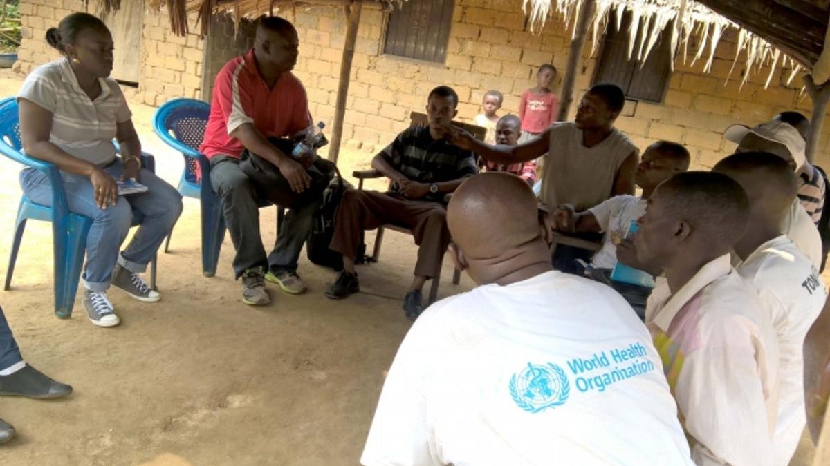 L’équipe conjointe des experts MSP-OMS s’entretenant avec un chef de groupement et des membres de sa communauté sur les mesures d’hygiène individuelle et collective. © OMS/ Hélène Komerwa. L’OMS et la MONUSCO sont allées, le…