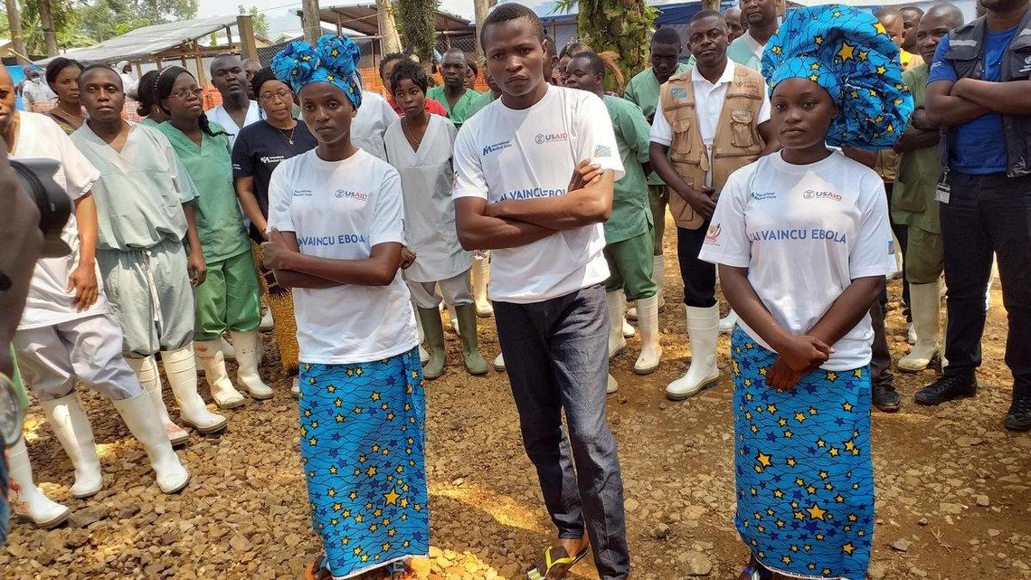 Trois guéris d'Ebola sortis ce 1 Août 2019 du centre de traitement Ebola de Mangina, dans le territoire de Beni. Photo MONUSCO/Martial Papy Mukeba Le 1er août 2019, Mangina, une commune rurale du territoire de Beni, située à…