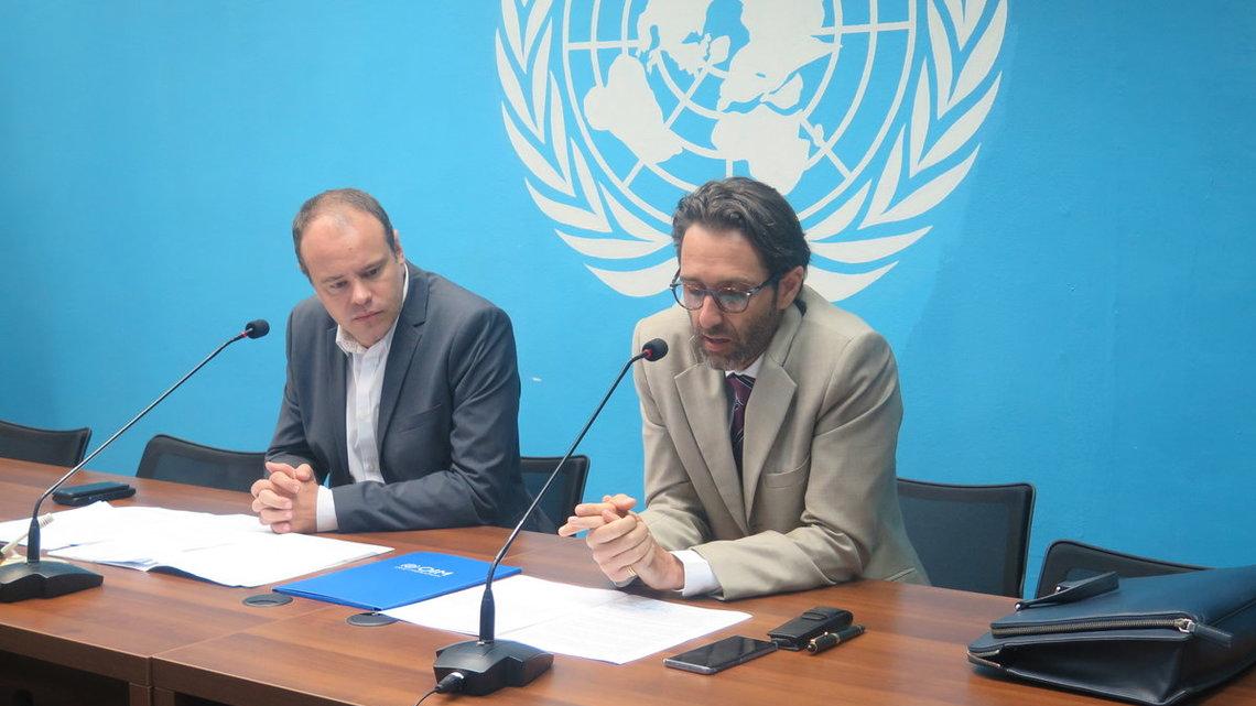 Le porte-parole de la MONUSCO par intérim, Mathias Gillmann, et le chef de Mission de l’OIM en RDC, Fabien Sambussy. Photo MONUSCO/ Lydie Betyna Le Conseil de sécurité des Nations Unies a prévu de se réunir demain à New York…