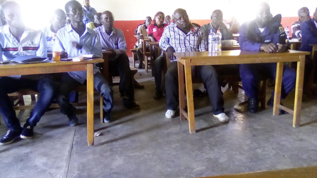Des participants à une rencontre initiée par la MONUSCO entre jeunes, fonctionnaires de l’Etat et forces de l’ordre et de sécurité, suivant un exposé du représentant de la MONUSCO sur le mécanisme d’alerte précoce. Photo…