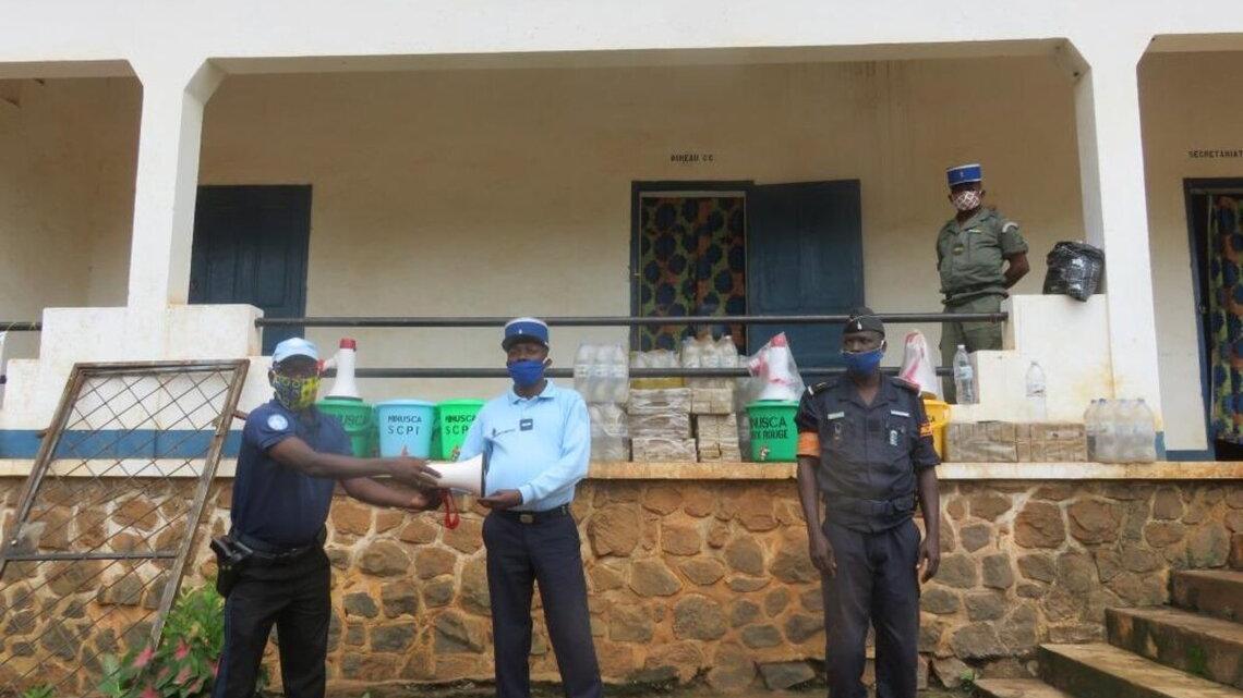 La MINUSCA, à travers sa Division de la Communication stratégique et de l'information publique (SCPI), a procédé, le mardi 30 juin 2020 à Bossangoa, à la remise de kits (savons de linge, palettes d’eau, masques, mégaphones et…