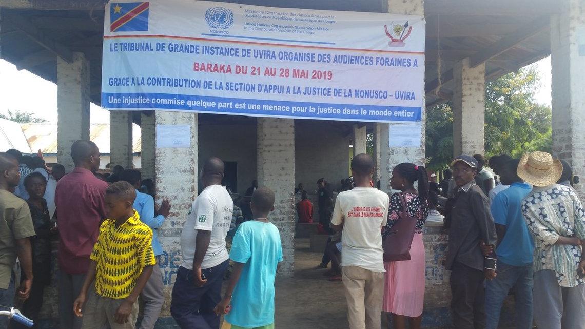 La MONUSCO facilite la tenue des audiences foraines à Baraka. Photo MONUSCO/Pony Matsande Du 2 au 28 mai 2019, le Tribunal de Grande Instance de Uvira a tenu des audiences foraines à Baraka à quelques 90 km au sud de Uvira…