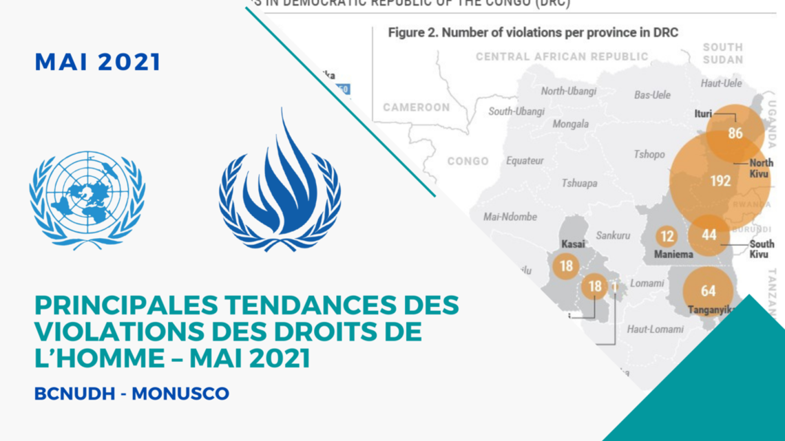Durant le mois de mai 2021, le BCNUDH a documenté 534 violations des droits de l’homme sur tout le territoire de la République démocratique du Congo soit une augmentation de 24% par rapport au mois d’avril (429 violations)…