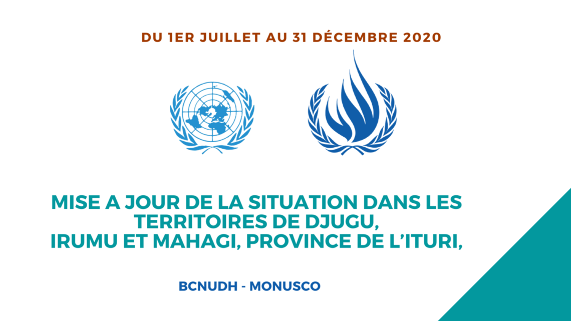 Mise à jour sur la situation dans les territoires de Djugu, Irumu et Mahagi, province de l’Ituri – 1er JUILLET AU 31 DECEMBRE 2020