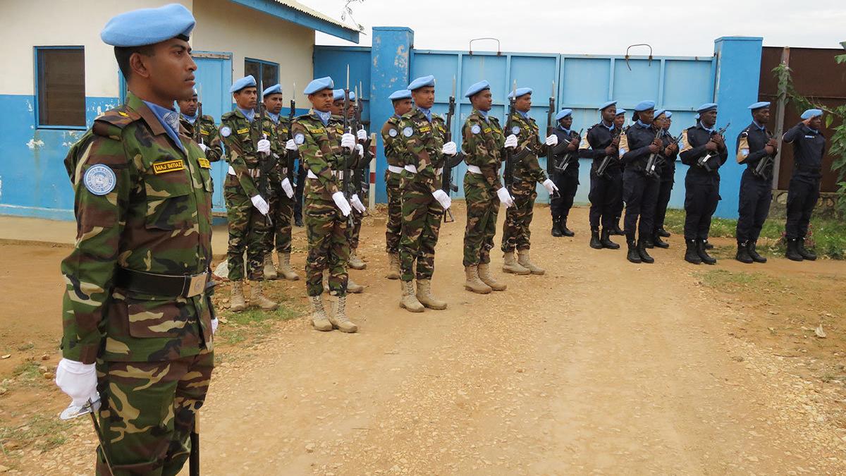 Cérémonie d'hommage aux casques bleus tués jeudi dernier.