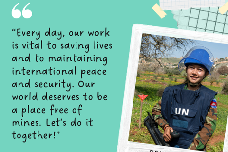 2022年 六月 13日和平捍卫者:雷姆•斯雷皮谈在黎巴嫩南部排雷 在联合国旗帜下服务的维和人员已经超过一百万名,在追求和平的路上,他们并非孤身奋战。在他们身后,还有强大而多元的伙伴关系为维和工作提供支持。在这一新系列中,我们将传递世界各地维和人员以及合作伙伴的声音,以庆祝每年 5月29日的联合国维持和平人员国际日。 作者:雷姆•斯雷皮和玛加莉•东上尉/编辑:玛雅•凯利 来自柬埔寨的雷姆•斯雷皮(Rem Sreypy)是在联合国地雷行动处(地雷行动处)培训的最年轻的排雷员之一…